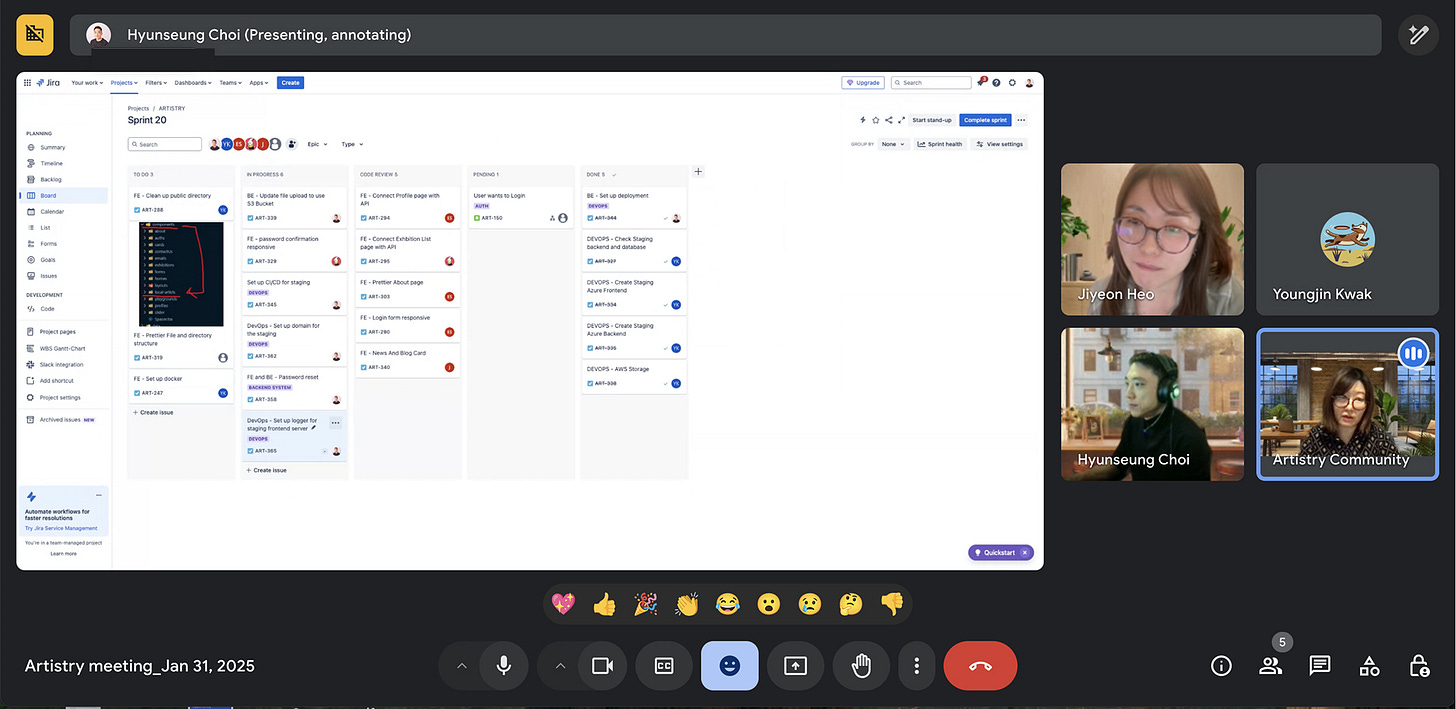 After completing the initial user research and UI design using Figma, I reached out to a Korean developer community in Canada through a group chat and pitched the project via Zoom. I asked anyone who was interested in “making this project a reality” to contact me. That’s how I gathered six developers.