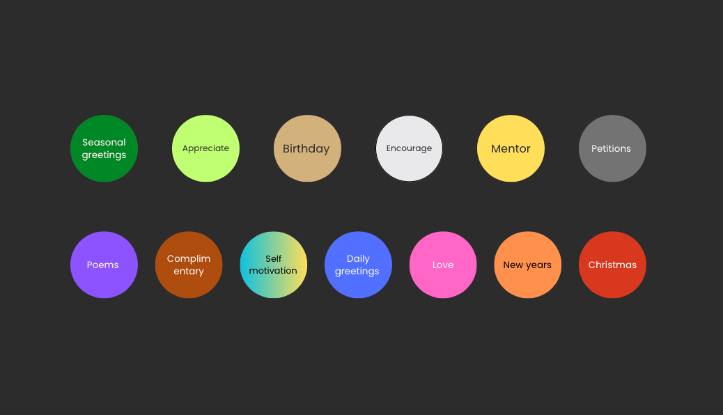 In our last newsletter, we categorized the calligraphy works and added theme stickers to each of them. Words like Encourage, Appreciate, Love, Seasonal greetings… became little tags that helped us map out the artworks in a more structured way.